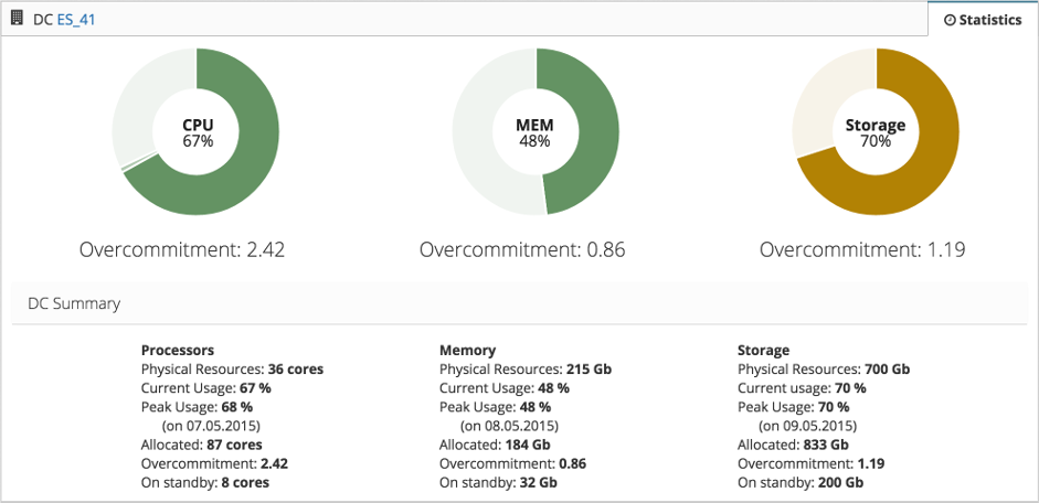 Orchestrator allows defining rates for basic computing and storage resources - CPU time, RAM usage, storage allocation and input-output operations on storage and network. The system gathers metrics on infrastructure usage and provides billing information for users, departments or projects.